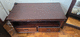 TV Console Solid wooden TV console, with one open shelf and two drawers below.