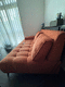 Sofa/Lounger - Deep-seated rust orange sofa (cozy lounger) Comfortable and compact 2-seater sofa in warm rust orange tone. extra-deep seating makes it perfect for lounging or lying down - great for naps, reading and rest.
